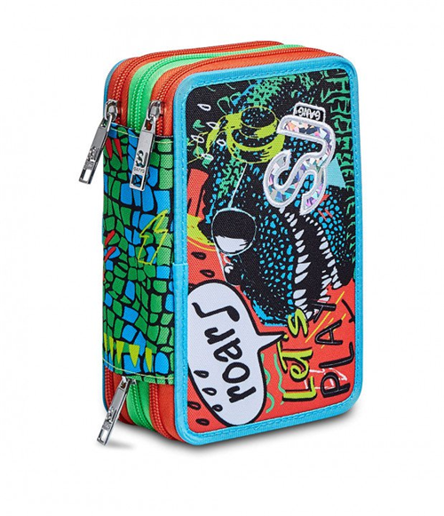 Astuccio 3 zip Seven SJ Gang Boy Animali da Sj - Dinosauro