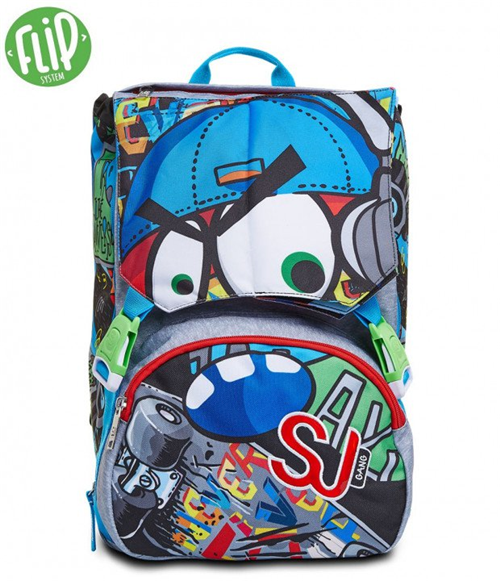 Ciao! Sono il nuovo zaino estensibile FACCE DA SJ BOY! Grazie al mio FLIP SYSTEM, il sistema di pattine sfogliabili, puoi divertirti a cambiarmi faccia ogni volta che vuoi! In quella principale i miei occhi olografici si muovono! Ho un doppio scomparto spazioso, di cui puoi aumentare facilmente la capienza tramite le zip laterali per poter accogliere e distribuire in modo ottimale anche i carichi più pesanti, sfruttando pure la tasca frontale. Inoltre sono davvero comodo da indossare sulle spalle, grazie allo schienale Ergosystem preformato e gli spallacci imbottiti e rivestiti in tessuto, mentre il fondo integrato mantiene la mia struttura inalterata, garantendo la stabilità del contenuto anche a pieno carico.
