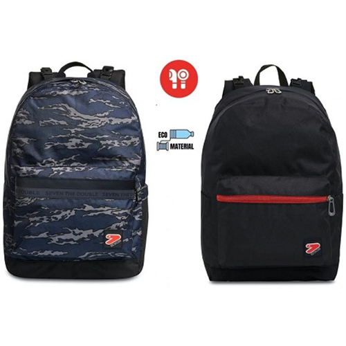 Con questo zaino reversibile Seven The Double, che include gli EARPHONES WIRELESS, hai 2 zaini in 1: il primo in fantasia, l’altro in tinta unita. Per rigirarlo tutte le volte che vuoi, staccando lo schienale, ti bastano poche semplici mosse. Lo zaino reversibile è realizzato in tessuto di poliestere riciclato ricavato da 29,5 bottiglie in PET da 500 ml ciascuna, garantendo tutti gli standard qualitativi dei nostri materiali. Entrambi i lati, in fantasia e in tinta unita, hanno una comoda tasca frontale e quello in fantasia ha anche una tasca laterale in rete ed elastico porta borraccia. Infine lo schienale è imbottito e, insieme agli spallacci imbottiti e traspiranti, rende lo zaino comodo da indossare sulle spalle.