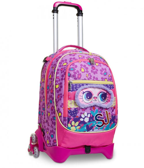 Ciao! Sono il nuovo Trolley Jack-3WD ANIMALI FANTASY DA SJ GIRL, dotato di sistema a 3 ruote che agevola la salita dei gradini. Colorato e multiuso, in poche semplici mosse da trolley divento zaino e viceversa. Il mio carrello ha fondo rinforzato e protezioni angolari per dare stabilità al trolley e protezione al contenuto. Lo sganci e divento uno zaino lavabile, maxi capiente, dotato di tasca frontale con una fantastica applicazione in peluche e comodo da indossare grazie a schienale e spallacci imbottiti e rivestiti in tessuto. Spallacci che, se mi usi come trolley, possono essere a scomparsa o, grazie al CROSSOVER SYSTEM, sollevarsi automaticamente tirando su la resistente doppia barra telescopica con due regolazioni in altezza, evitando che i nastri striscino a terra.