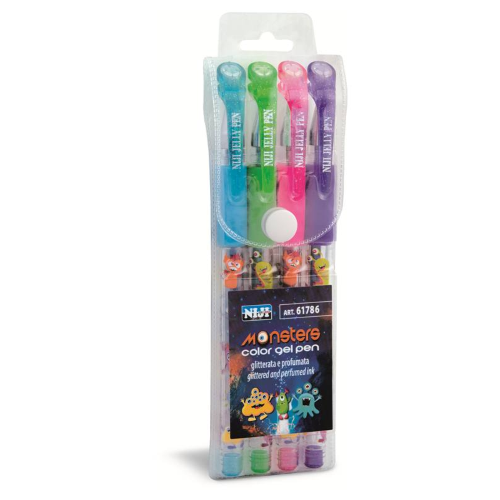 COLOR GEL PEN. Monsters penne con inchiostro glitterato profumato.
