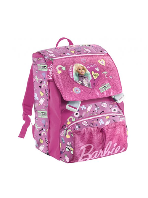 Zaino Barbie scuola estensibile realizzato in tessuto poliestere 600, stampa all over. Misure 29x40x13+8. originale Seven.