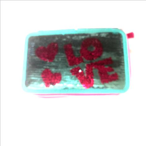 Astuccio 3 zip PlayToy - con paylettes girabrilla - turchese con scritta "Love"