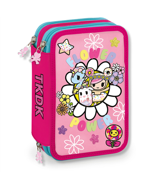 Astuccio a tre piani chiuse da zip corredato di tutto il necessario per la scuola 18 Pastelli Giotto 18 Pastelli, uma penna cancellabile Frixion e tanti altri accessori.