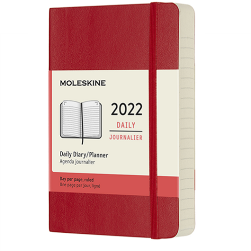 Agenda giornaliera Moleskine 2022 - 12 mesi - pocket - copertina mobida - rosso scarlatto