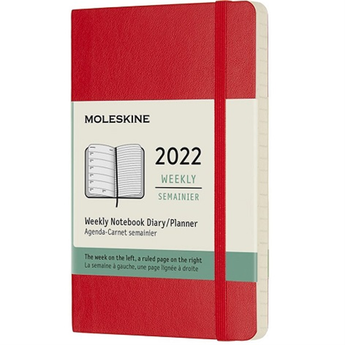 Agenda settimanale notebook Moleskine 2022 - 12 mesi - pocket - copertina mobida - rosso scarlatto