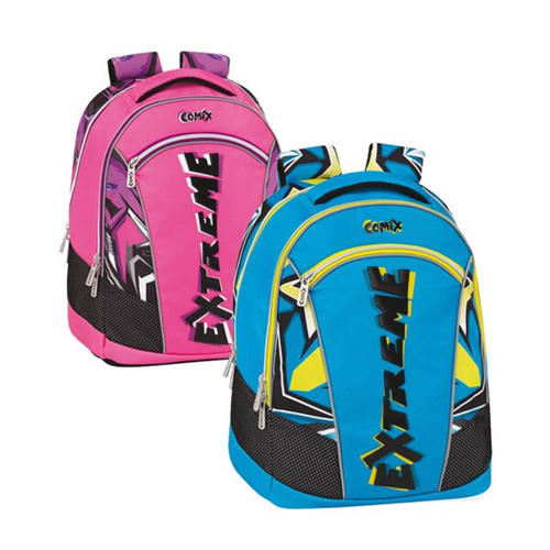 Anche per il Back To School 2021/2022 non rinunciare allo stile unico che da sempre contraddistingue la Collezione Scuola Comix prodotta da Franco Cosimo Panini. Lo Zaino Organizzato Comix Extreme è perfetto per la Scuola o per il Tempo Libero. Vano principale e doppia tasca frontale con zip. Il fondo e lo schienale sono termoformati per una migliore distribuzione del peso e una maggiore protezione del contenuto. Spallacci imbottiti e regolabili. Disponibile in 2 varianti di colore, scegli il tuo preferito prima di completare l'ordine. Dimensioni: 32x43hx23 cm. Prodotto Ufficiale Comix by F.C. Panini.