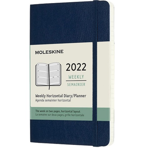 Agenda settimanale orizzontale Moleskine 2022 - 12 mesi - large - copertina mobida - blu