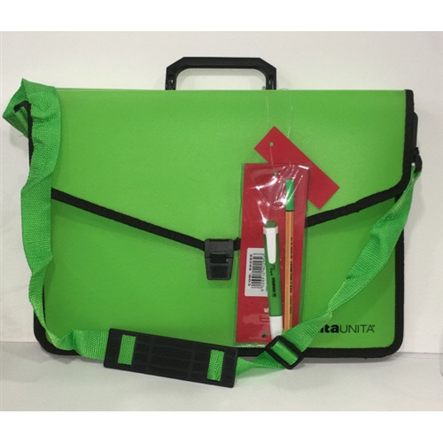 Valigetta in PPL morbido TitntaUnita + OMAGGIO 2 prodotti stabilo - con tracolla - profilata in tessuto - 27x38 cm - verde