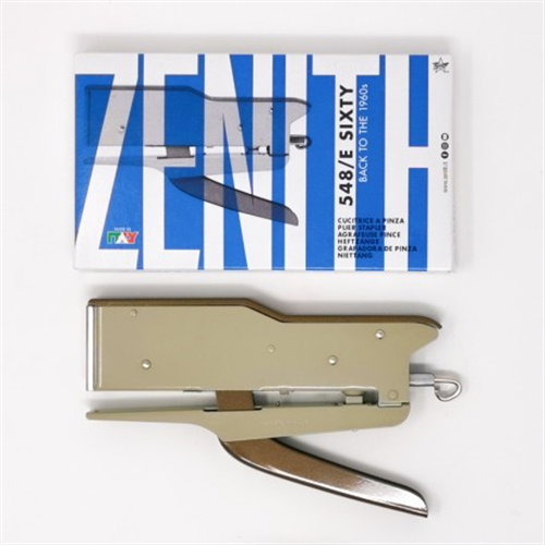 “Back to the 1960s” è infatti riportato sulla confezione della nuova cucitrice ZENITH 548/E “SIXTY”, che si ispira (colori cucitrice e confezione) alla cucitrice ZENITH 548/E di quegli anni, quando era la sola combinazione di colori disponibile (denominata ”Beige/oro cangiante”).