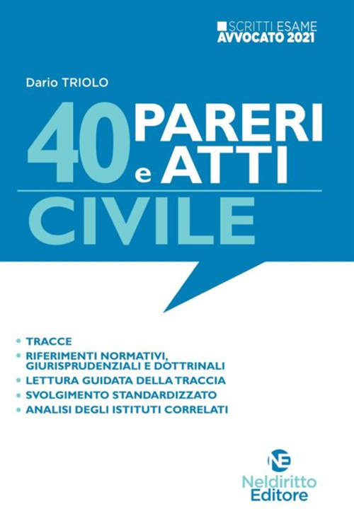 Nel volume sono state identificate e trattate le questioni più attuali e dibattute in giurisprudenza, attraverso un inquadramento semplice e schematico degli istituti e l'esposizione degli orientamenti giurisprudenziali. Per ogni questione viene elaborata una traccia d'esame in relazione alla quale si propone al lettore lo svolgimento sia dell'atto giudiziario che del parere, in modo da permettergli di trarre utili spunti per l'elaborazione degli stessi in sede d'esame. Ogni argomento, inoltre, viene affrontato con specifico riferimento ad una sentenza di recente legittimità, oltre ad essere accompagnato da una ricognizione della giurisprudenza rilevante, le cui massime sono state utilizzate per la stesura dell'atto giudiziario e del parere. Completa il volume un inquadramento teorico generale di ogni istituto giuridico affrontato, al fine di proporre al lettore un approccio sistematico.