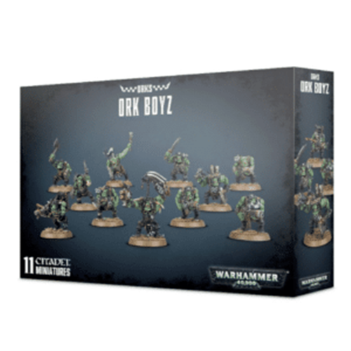 Questa confezione contiene 11 Ork Boyz multicomponente di plastica e include le opzioni per ferri, zpakka, zpara, armi pesanti e bombe a mazza. I modelli sono forniti con basette rotonde da 32 mm.