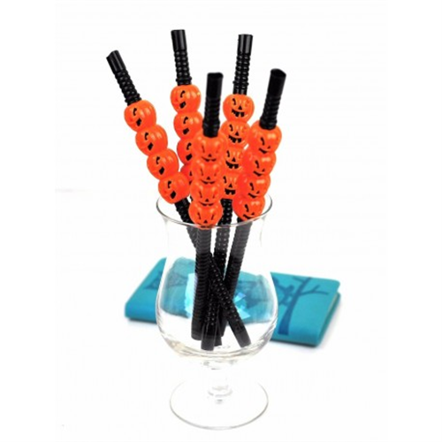 SET 5 CANNUCCE 28X1CM NERE CON 4 ZUCCHE ARANCIO IN PLASTICA PER DECORAZIONI E ALLESTIMENTI TAVOLI LOCALI PER HALLOWEEN