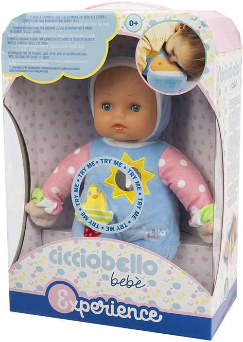 Cicciobello Bebè Experience, la bambola molto soffice disegnata per sviluppare la sensorialità dei più piccini attraverso specifici elementi tattili e sonori. Una varietà di materiali, suoni e colori che favoriscono le nuove scoperte dei neonati. All'interno della confezione trovi: lo specchio che stimola la curiosità visiva, il materiale scricchiolante sulle gambine, tessuti diversi per lo sviluppo tattile ed un grazioso sonaglino.