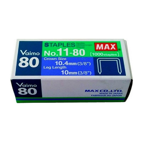 Consentono di cucire da 2 a 80 fogli (stima con carta da 60 gr/mq) in punto standard o piatto con la cucitrice a leva Max Vaimo 80. Tipo punto: passo 11 Contenuto: 1000 punti