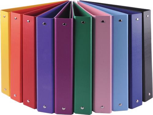 RACCOGLITORI 4 ANELLI IN CARTONE RIVESTITO ASSORTITI IN 10 COLORI: GIALLO, ARANCIO, ROSSO, LILLA, VIOLA, VERDE, ROSA, AZZURRO, BLU E NERO, DIAMETRO 50 MM FORMATO 27 X 32