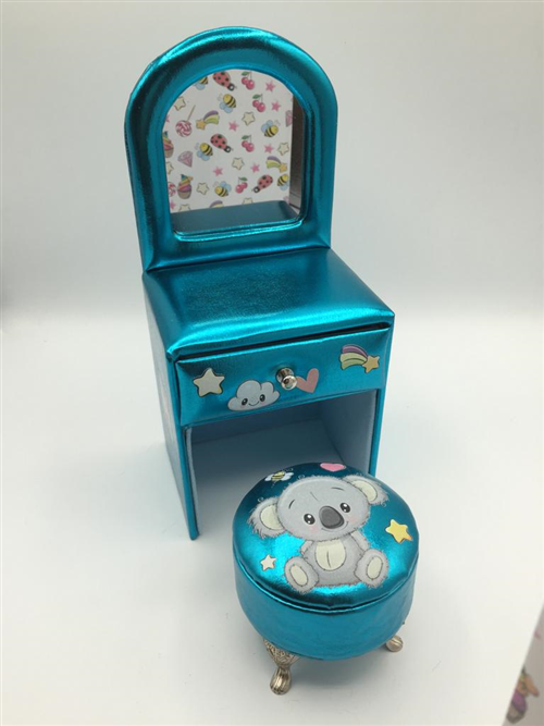 Young People aggiunge alla sua linea una stilosa specchiera in miniatura con cassettino e pouf che diventa un piccolo portagioie nei fantastici colori metallizzati rosa, fucsia e azzurro.