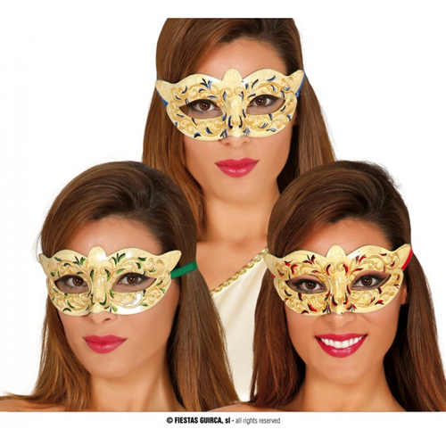 Mascherina domino veneziana Guirca 12920 - base grigia con decorazioni oro/verde