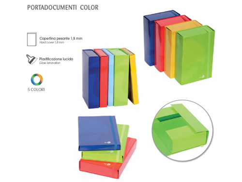 Cartella portaprogetti realizzata in presspan. Chiusura interna ed esterna con bottoni automatici. Le Scatole archivio cartone, utilizzabili come faldoni per ufficio, sono adatte a contenere documentazione e piccoli oggetti come campioni o prototipi, consentendo di raggruppare tutto il materiale riguardante un progetto. Sono disponibili in quattro colori con sei differenti dorsi per adattarsi alle diverse necessità di archivio. Formato 25x35 cm.