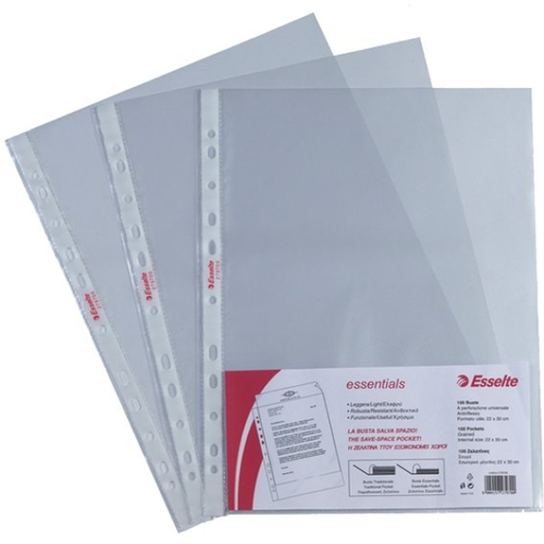 Confezione 100 buste forate Esselte Essentials - leggere - antiriflesso - 22x30 cm - trasparenti