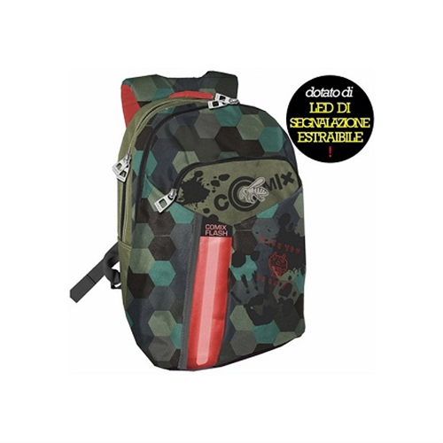 Zaino Comix Panini - Flash 55632 - Americano - Fantasia con base Verde e led Rosso