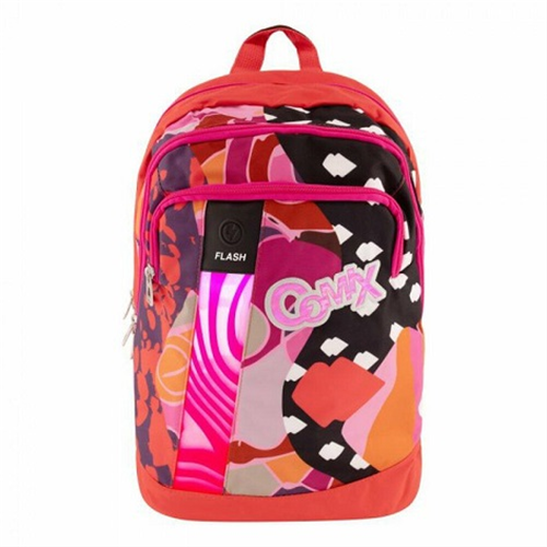 Zaino organizzato Comix, dotato di una speciale barra led estraibile per una personalizzazione unica. Tessuto poliestere semilucido effetto nylon e zip in metallo. Schienale e fondo termoformati, spallacci ergonomici. Doppio scomparto interno separato con chiusura a zip, tasca frontale a chiusura a cerniera.