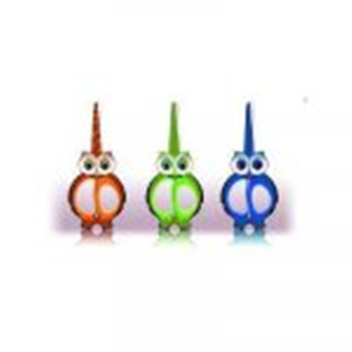 Forbici per bambini con un simpatico motivo a gufo. Le lame sono in metallo con punta arrotondata.