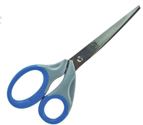 FORBICI SOFT con morbida impugnatura ergonomica e lama in acciaio .Confezionate singolarmente in blister appendibile