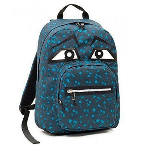 Zaino Invicta Seven - Face Yap 206001661 - americano - Blu con fantasia - occhi aperti - zip apribile sulla bocca