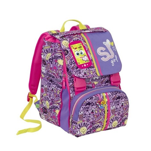 Ciao! Sono lo zaino estensibile SJ Gang High Tech GIRL, dotato di taschina porta card per personalizzare il tuo zaino con emozione che vuoi condividere e il portachiavi luminoso, che ti accompagna a scuola in modo divertente e giocoso! Infatti grazie al mio FLIP SYSTEM in satin puoi divertirti a cambiarmi le grafiche, così avrai uno zaino sempre diverso! Ho un ampio doppio scomparto, la cui capienza si può facilmente moltiplicare grazie alle zip laterali per poter accogliere e distribuire in modo ottimale anche i carichi più pesanti. Con lo schienale Ergosystem preformato e gli spallacci imbottiti e traspiranti sono comodo da indossare sulle spalle, mentre il fondo integrato fa sì che la mia struttura rimanga inalterata e stabile anche a pieno carico. Inoltre grazie alllo Shifty System puoi regolare gli spallacci con più libertà e rendermi ancora più comodo!