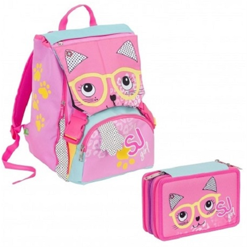 School Pack SJ Seven - Zaino + astuccio 3 zip - Gang 6C2001706 - Animali da SJ - estensibile - Gattino
