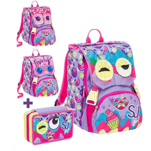 School Pack SJ Seven - Zaino + astuccio 3 zip - Gang 6C2001914 - Facce da SJ - estensibile - Sweet