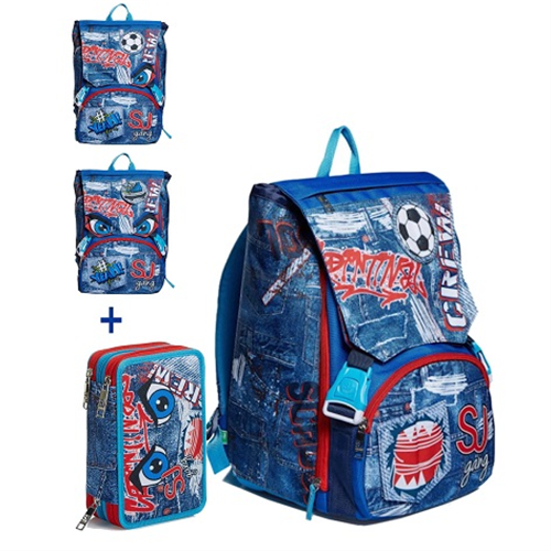 School Pack SJ Seven - Zaino + astuccio Quick Case - Gang 6C2002023 - Facce da SJ - estensibile - Crew