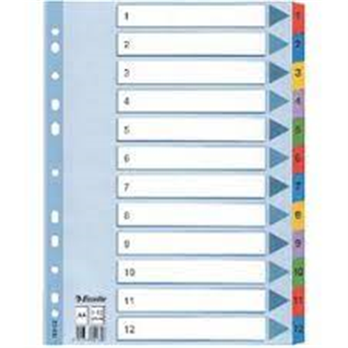 Rubrica in cartoncino con tasti colorati e rinforzati in mylar Perforazione universale a 11 fori 12 tasti numerici colorati e stampati da 1 a 12 in entrambi i lati per una facile classificazione