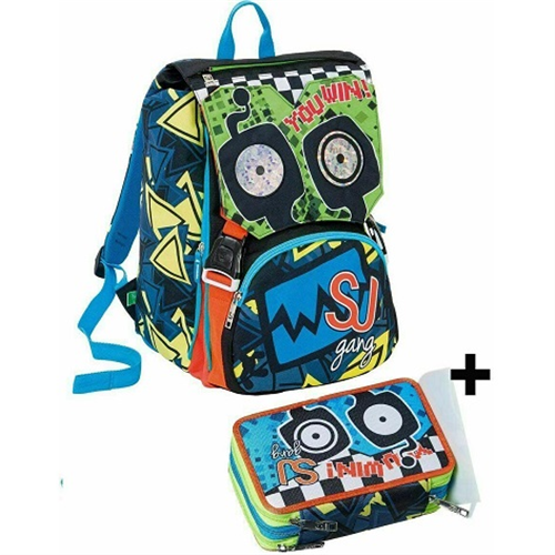 School Pack SJ Seven - Zaino + astuccio 3 zip - Gang 6C2002025 - Facce da SJ - estensibile - Win