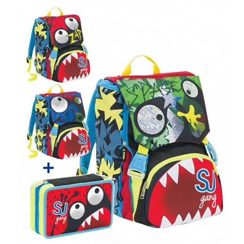 School Pack SJ Seven - Zaino + astuccio 3 zip - Gang 6C2001915 - Facce da SJ - estensibile - Space