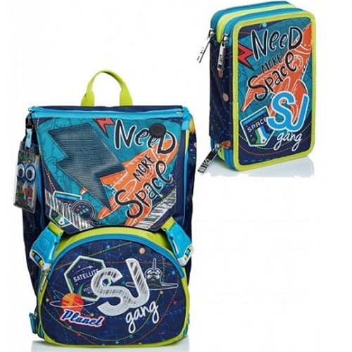 School Pack SJ Seven con fulmine led - Zaino + astuccio 3 zip - Gang 6C2002021 - estensibile - Ledtech Boy