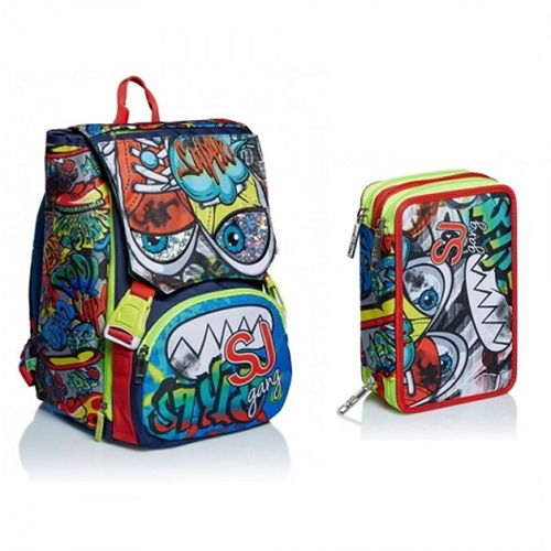 School Pack SJ Seven - Zaino + astuccio 3 zip - Gang 6C2002025 - Facce da SJ - estensibile - Super