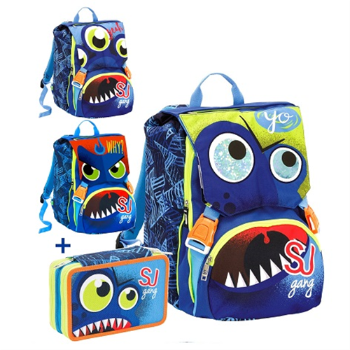 School Pack SJ Seven - Zaino + astuccio 3 zip - Gang 6C2001915 - Facce da SJ - estensibile - Monster