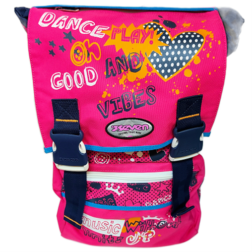 Lo zaino estensibile Seven Pink, con uno stile curato nei minimi particolari, ha un doppio scomparto pratico e spazioso, la cui capienza si può facilmente moltiplicare tramite le comode zip laterali per accogliere e distribuire in modo ottimale anche i carichi più pesanti. Dotato di fibbie per l'apertura, grazie allo schienale Ergosystem preformato e agli spallacci imbottiti e traspiranti è comodo da indossare sulle spalle, ed avendo il fondo integrato la sua struttura, anche a pieno carico, rimane inalterata garantendo la stabilità del contenuto. Dotato anche di una maxi tasca frontale per gli accessori più piccoli puoi metterci davvero tutto ciò che ti serve.