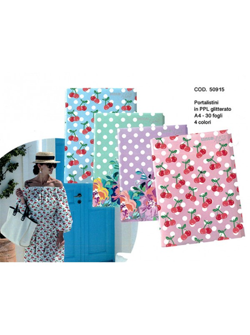 Portalistino in ppl glitterato A4 30 fogli in 4 varianti di colore: