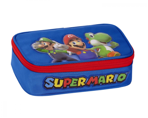 Con una grafica accattivante con l'immagine dell'idraulico con i baffetti più famoso del mondo insieme al fedele fratello Luigi e il simpatico Yoshi, questo astuccio di forma rettangolare e large ha un unica zip che al suo interno ha un comodo divisorio dove inserire pastelli, pennarelli e altro ancora ed inoltre ha un comodo vano dove poter riporre tutto quello che si desidera, come calcolatrice, colla, compasso etc.