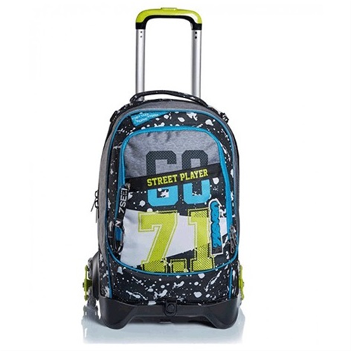Il Trolley Seven Jack-3WD DIP & SKYSTREET PLAYER, dotato di un sistema a 3 ruote che agevola la salita dei gradini, è pieno di stile e multiuso. In poche semplici mosse, infatti, da trolley diventa zaino e viceversa. Il carrello ha fondo rinforzato e protezioni angolari, dando stabilità al trolley e protezione al contenuto. Lo sganci e hai uno zaino lavabile, maxi capiente, dotato di tasca frontale e comodo da indossare grazie a schienale imbottito e spallacci imbottiti e traspiranti. Spallacci che, se lo usi come trolley, possono essere a scomparsa o, grazie al CROSSOVER SYSTEM, sollevarsi automaticamente tirando su la resistente doppia barra telescopica con due regolazioni in altezza, evitando che i nastri striscino a terra.