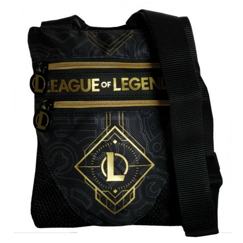 TRACOLLINA LEAGUE OF LEGENDS NERA 3 TASCHE CON ZIP ORO STAMPA A RILIEVO COLORE ORO 19X23CM ORIGINAL PANINI SCUOLA ITALY
