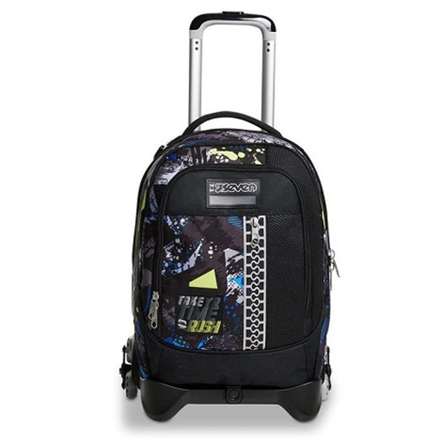 Il Trolley Seven Jack-3WD, dotato di un sistema a 3 ruote che agevola la salita dei gradini e personalizzato con dettagli curati nei minimi particolari, unisce stile e versatilità. In poche semplici mosse, infatti, da trolley diventa zaino e viceversa. Il carrello ha fondo rinforzato e protezioni angolari per dare stabilità al trolley e protezione al contenuto. Lo sganci e hai uno zaino lavabile, maxi capiente, dotato di tasca frontale e comodo da indossare grazie a schienale e spallacci imbottiti. Spallacci che, se lo usi come trolley, possono essere a scomparsa o, grazie al CROSSOVER SYSTEM, sollevarsi automaticamente tirando su la resistente doppia barra telescopica con due regolazioni in altezza, evitando che i nastri striscino a terra. Caratteristiche Tecniche Schienale Imbottito e rivestito in tessuto Capacità 34 lt Dimensioni 37 x 51 x 27 cm Altre caratteristiche Trolley scomponibile con sistema a 3 ruote che agevola la salita dei gradini, Crossover System con clips per l'aggancio dei nastri, doppia barra telescopica con due regolazioni in altezza, fondo rinforzato e protezioni angolari. 3 possibili utilizzi: 1) uso trolley con spallacci a scomparsa totale nello schienale; 2) uso zaino senza sganciare il carrello; 3) uso zaino quando completamente sganciato dal carrello (zaino lavabile) Tasche Tasca frontale Spallacci Imbottiti e rivestiti in tessuto Tessuto Poliestere e inserti in rete imbottita