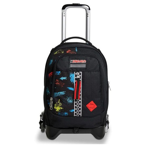 Il Trolley Seven Jack-3WD, dotato di un sistema a 3 ruote che agevola la salita dei gradini e personalizzato con dettagli curati nei minimi particolari, unisce stile e versatilità. In poche semplici mosse, infatti, da trolley diventa zaino e viceversa. Il carrello ha fondo rinforzato e protezioni angolari per dare stabilità al trolley e protezione al contenuto. Lo sganci e hai uno zaino lavabile, maxi capiente, dotato di tasca frontale e comodo da indossare grazie a schienale e spallacci imbottiti. Spallacci che, se lo usi come trolley, possono essere a scomparsa o, grazie al CROSSOVER SYSTEM, sollevarsi automaticamente tirando su la resistente doppia barra telescopica con due regolazioni in altezza, evitando che i nastri striscino a terra. Caratteristiche Tecniche Schienale Imbottito e rivestito in tessuto Capacità 34 lt Dimensioni 37 x 51 x 27 cm Altre caratteristiche Trolley scomponibile con sistema a 3 ruote che agevola la salita dei gradini, Crossover System con clips per l'aggancio dei nastri, doppia barra telescopica con due regolazioni in altezza, fondo rinforzato e protezioni angolari. 3 possibili utilizzi: 1) uso trolley con spallacci a scomparsa totale nello schienale; 2) uso zaino senza sganciare il carrello; 3) uso zaino quando completamente sganciato dal carrello (zaino lavabile) Tasche Tasca frontale Spallacci Imbottiti e rivestiti in tessuto Tessuto Poliestere
