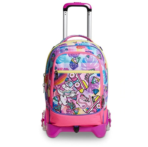 Ciao! Sono il nuovo Trolley Jack-3WD, dotato di sistema a 3 ruote per agevolare la salita dei gradini. Colorato e multiuso, in poche semplici mosse da trolley divento zaino e viceversa. Il mio carrello ha fondo rinforzato e protezioni angolari per dare stabilità al trolley e protezione al contenuto. Lo sganci e divento uno zaino lavabile, maxi capiente, dotato di tasca frontale e comodo da indossare grazie a schienale e spallacci imbottiti e rivestiti in tessuto. Spallacci che, se mi usi come trolley, possono essere a scomparsa o, grazie al CROSSOVER SYSTEM, sollevarsi automaticamente tirando su la resistente doppia barra telescopica con due regolazioni in altezza, evitando che i nastri striscino a terra. Caratteristiche Tecniche Schienale Imbottito e rivestito in tessuto Capacità 34 lt Dimensioni 37 x 51 x 27 cm Altre caratteristiche Sistema a tre ruote che agevola la salita dei gradini. 3 POSSIBILI UTILIZZI: 1) Uso trolley con spallacci a scomparsa totale nello schienale. 2) Uso zaino senza sganciare il carrello. 3) Uso zaino quando completamente sganciato (zaino lavabile). Tasche Tasca frontale chiusa con zip. Spallacci Imbottiti e rivestiti in tessuto Tessuto Poliestere