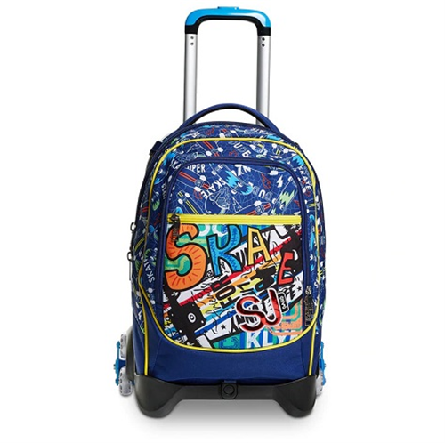 Ciao! Sono il nuovo Trolley Jack-3WD, dotato di sistema a 3 ruote per agevolare la salita dei gradini. Colorato e multiuso, in poche semplici mosse da trolley divento zaino e viceversa. Il mio carrello ha fondo rinforzato e protezioni angolari per dare stabilità al trolley e protezione al contenuto. Lo sganci e divento uno zaino lavabile, maxi capiente, dotato di tasca frontale e comodo da indossare grazie a schienale e spallacci imbottiti e rivestiti in tessuto. Spallacci che, se mi usi come trolley, possono essere a scomparsa o, grazie al CROSSOVER SYSTEM, sollevarsi automaticamente tirando su la resistente doppia barra telescopica con due regolazioni in altezza, evitando che i nastri striscino a terra. Caratteristiche Tecniche Schienale Imbottito e rivestito in tessuto Capacità 34 lt Dimensioni 37 x 51 x 27 cm Altre caratteristiche Sistema a tre ruote che agevola la salita dei gradini. 3 POSSIBILI UTILIZZI: 1) Uso trolley con spallacci a scomparsa totale nello schienale. 2) Uso zaino senza sganciare il carrello. 3) Uso zaino quando completamente sganciato (zaino lavabile). Tasche Tasca frontale chiusa con zip. Spallacci Imbottiti e rivestiti in tessuto Tessuto Poliestere