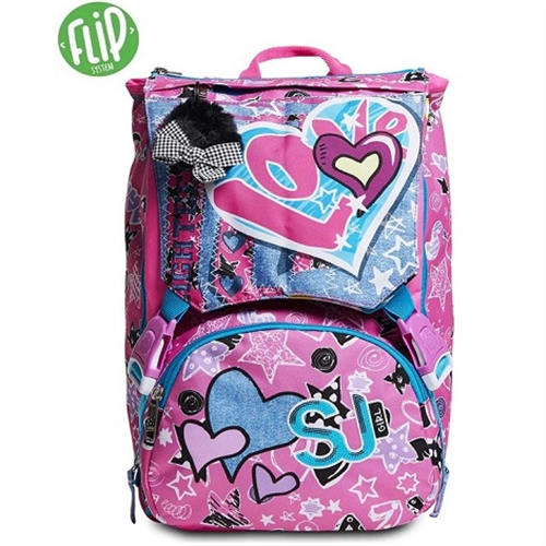 Ciao! Sono il sorprendente zaino estensibile SJ Gang! Mi piace unire il gioco e la comodità per affrontare insieme a te la scuola con spensieratezza. Sono dotato di un charm amovibile e del FLIP SYSTEM: un sistema di pattine sfogliabili con diverse grafiche. Inoltre, aprendo e chiudendo la pattina, attiverai il mio dispositivo led luminoso ricaricabile tramite USB. Divertiti a scoprirle tutte! Ti sembrerà di avere uno zaino sempre diverso! Ho un ampio doppio scomparto, la cui capienza si può facilmente moltiplicare grazie alle zip laterali per poter accogliere e distribuire in modo ottimale anche i carichi più pesanti. Con lo schienale Ergosystem preformato e gli spallacci imbottiti e traspiranti sono comodo da indossare sulle spalle, mentre il fondo integrato fa sì che la mia struttura rimanga inalterata e stabile anche a pieno carico. Caratteristiche Tecniche Schienale Ergosystem preformato con fondo integrato Capacità 21 LT - 28 LT Dimensioni 27 x 41 x 16 (+6) cm Altre caratteristiche Zaino doppio scomparto estensibile tramite zip laterali. Inserti rifrangenti per protezione a 360°. Sistema Flip System con 3 pattine sfogliabili calamitate con diverse fantasie. Tasche Tasca frontale. Tasca su pattina. Spallacci Imbottiti e rivestiti in tessuto e rete traspirante Tessuto Poliestere
