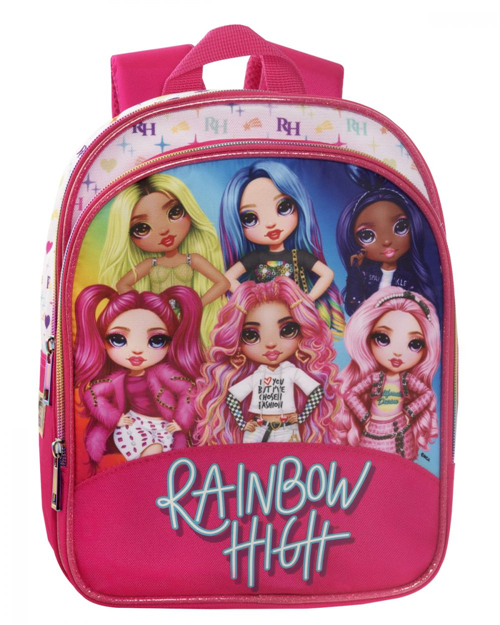Con l'immagine delle bellissime Rainbow High sempre alla moda e chic e con la prevalenza del colore rosa con dettagli bianchi e colorati, questo zaino ha tutto il necessario per accompagnarti in un nuovo anno scolastico, ha spallacci imbottiti e regolabili per una tenuta sempre comoda, inoltre ha due cerniere e una pratica tasca frontale con zip.
